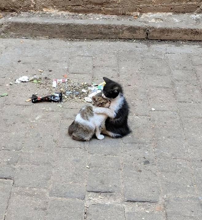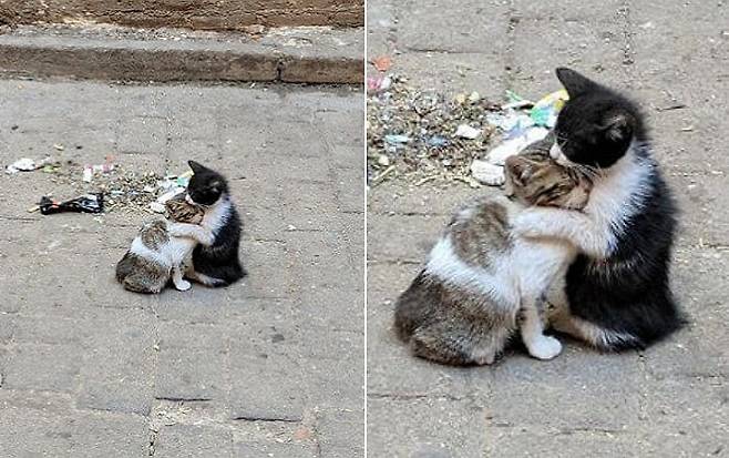 길고양이 두 녀석이 서로 안고 있는게 아니겠어요