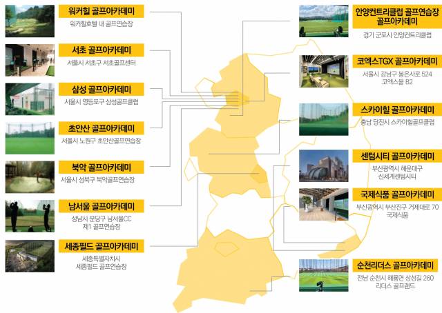 JNGK 골프아카데미는 1999년 남서울, 워커힐호텔 골프아카데미를 시작으로 부산 해운대 신세계 센텀백화점까지 현재 전국 주요 지역 13곳에 아카데미를 설립, 운영하고 있다.
