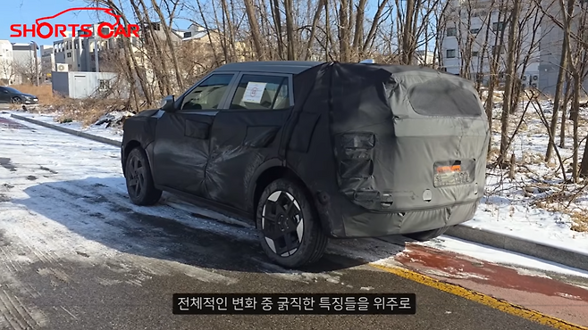 두꺼운 위장막에도 불구하고, 현행 SX2와는 확실히 다른 실루엣이 드러난다. 보다 직립적인 차체 비율, 날카로운 면 처리, 간결한 조형미 등 콘셉트카에 가까운 방향성이 감지된다.