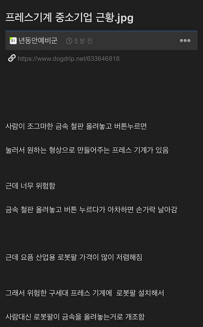 프레스 기계 쓰는 중소기업 근황
