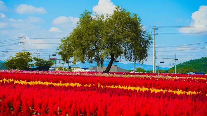 이곳은 촛불맨드라미, 백일홍, 버베나 등 원색의 화려함을 자랑하는 꽃들이 구역별로 무리를 지어 피어납니다.