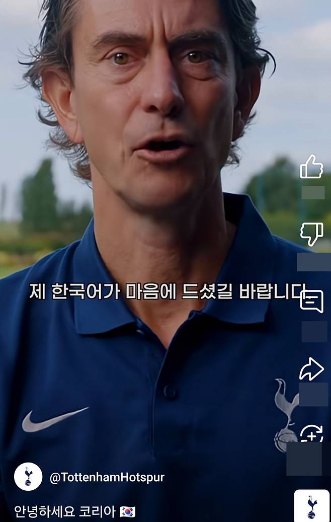 토트넘 공식 소셜네트워크서비스(SNS)를 통해 공개된 영상에서 프랭크 감독은 "안녕하세요, 코리아, 저는 토마스 프랭크입니다"라며 미리 열심히 연습한 듯 또렷한 한국어 인사를 건넸다.