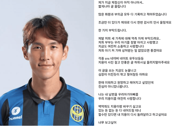 사망 이후 강지용 아내 이다은 씨의 SNS에는 그리움과 회한이 담긴 심경이 쏟아졌습니다. 그녀는 “지용이, 너무 보고 싶다. 백억 줘도 다시는 못 바꾼다”며 남편을 향한 애틋한 감정을 전했습니다. 이다은 씨는 "한때 미워하고 원망했던 것도 있었지만, 진심이 아니었던 것 같다"며 고통 속에서도 남편을 향한 사랑을 고백했습니다.