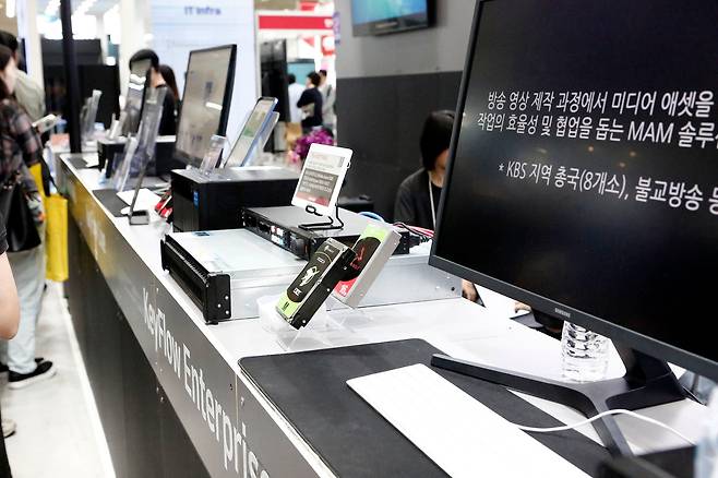방송 영상 관련 전시회인만큼 영상편집과 공유 스티리밍에 대해서 큐냅과 씨게이트 스토리지가 제시하는 솔루션을 사용했을때의 이점을 적극적으로 소개하고 있습니다.