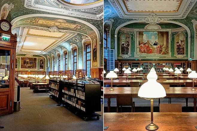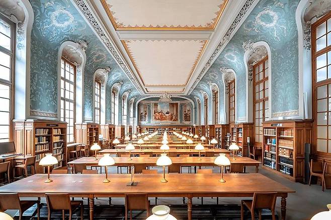 특히 자클린 드 로밀리 독서실은 화려한 조각과 파란 하늘색 벽으로 꾸며져 있어, 마치 마법에 빠진 듯한 분위기를 자아냅니다.