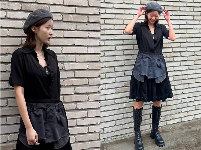 이와 블랙& 그레이 모노톤으로 캐주얼하면서도 키치한룩을 선보이기도 했습니다.