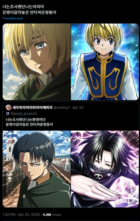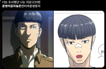 X에서 크게 유행하고 있다. 시작점은 진격의 거인 조사병단 캐릭터와