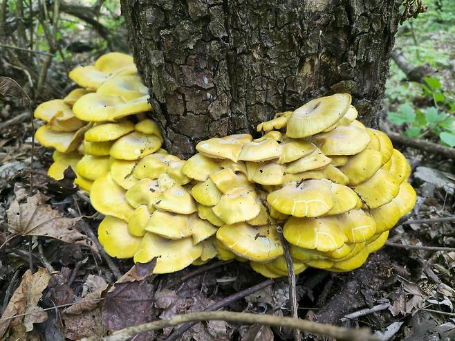 '노란 산느타리'는 35년 심마니 경력에 처음 보는 멋진 녀석입니다.