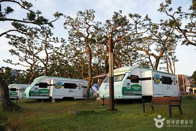 해변 뒤편으로는 울창한 소나무숲이 펼쳐져 있다. 이 숲에는 오류캠핑장이 조성돼 있어 텐트캠핑은 물론 카라반캠핑도 가능하다. 바다와 숲, 민물이 함께 어우러진 환경은 캠핑의 매력을 더욱 끌어올린다. 캠핑장 인근에는 샤워장과 화장실, 전기시설 등도 비교적 잘 갖춰져 있어 여름철이면 이용객이 꾸준히 늘고 있다.