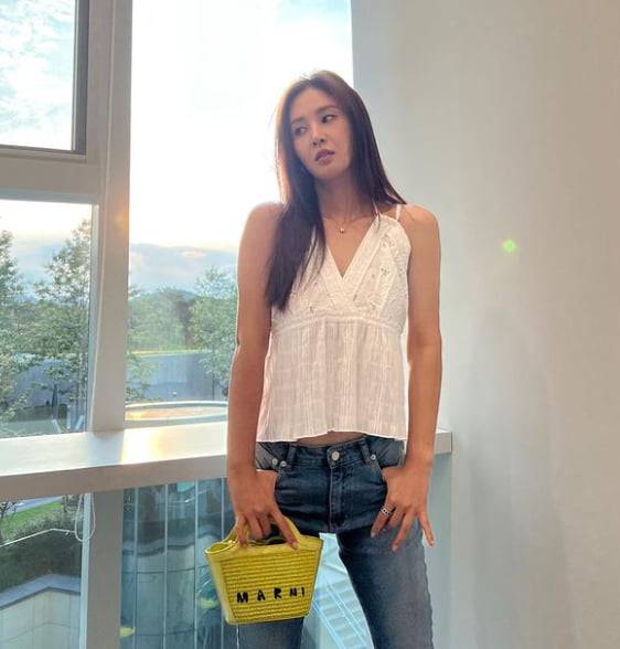 공개된 사진 속 유리는 나시에 청바지를 매치하고 탄탄한 바디라인을 뽐냈다. 구릿빛 피부가 유독 눈에 띈다.