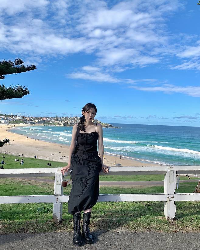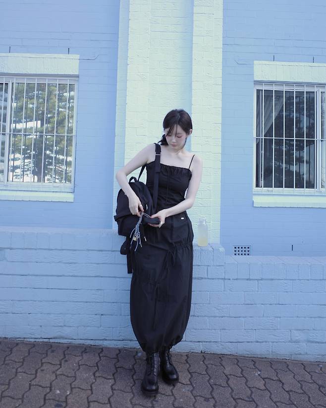 청량한 하늘과 대비되는 올블랙 무드가 오히려 더 강렬하게 다가오는 순간이에요.