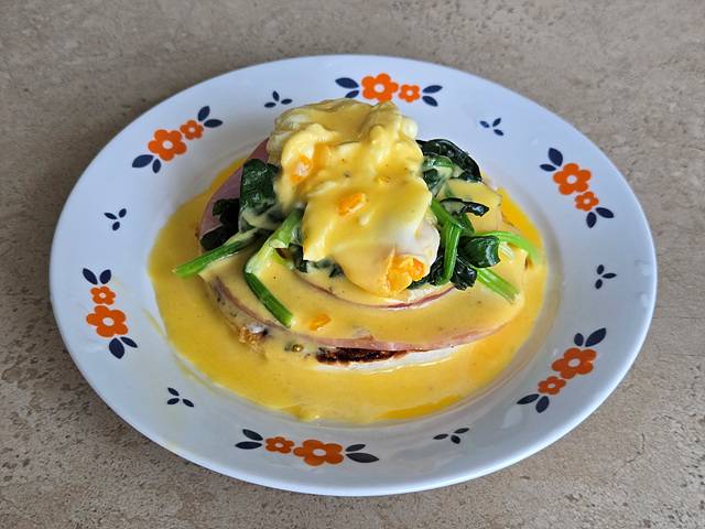 에그베네딕트. 다른 것보다 홀랜다이즈 소스가 좀 손이가는 요리죠. 수란이 터졌네요. ㅡㅡ