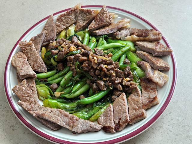 그린빈스는 우리 나라에서 잘 안쓰는 재료이긴 한데 아삭아삭 맛있습니다. 등심이랑 같이 곁들였네요.