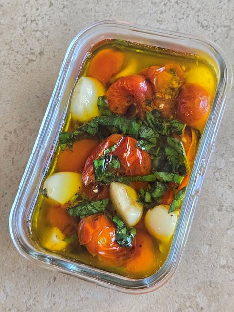 방울토마토 콩피. 오븐에 50분 정도 조리하는 시간이 걸려서 그렇지 재료준비는 5분 끝인 초간단 요리