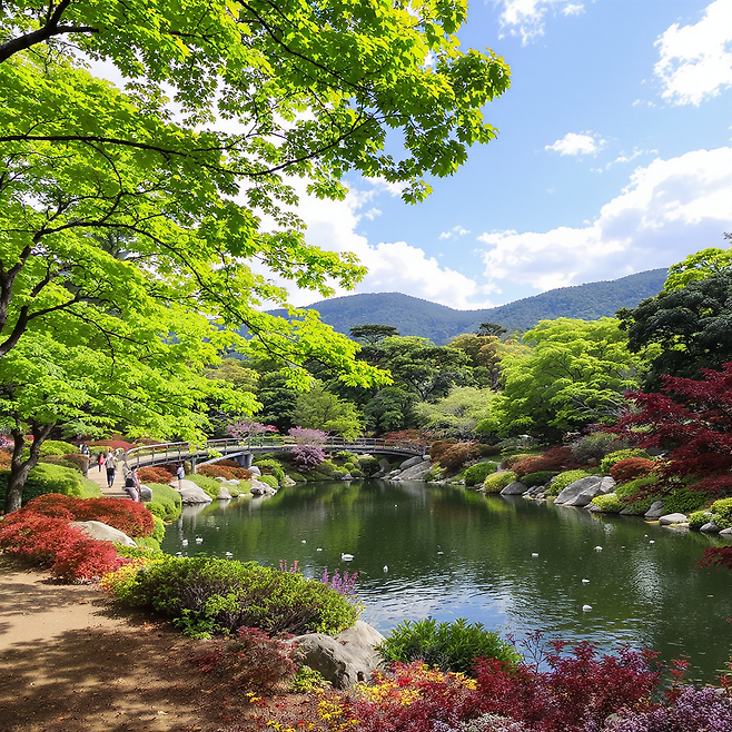 사계절의 아름다움: 봄에는 화려한 목련과 벚꽃, 여름에는 푸른 수목과 수국, 가을에는 단풍, 겨울에는 설경과 상록수가 어우러져 사계절 내내 다른 매력을 선사합니다.