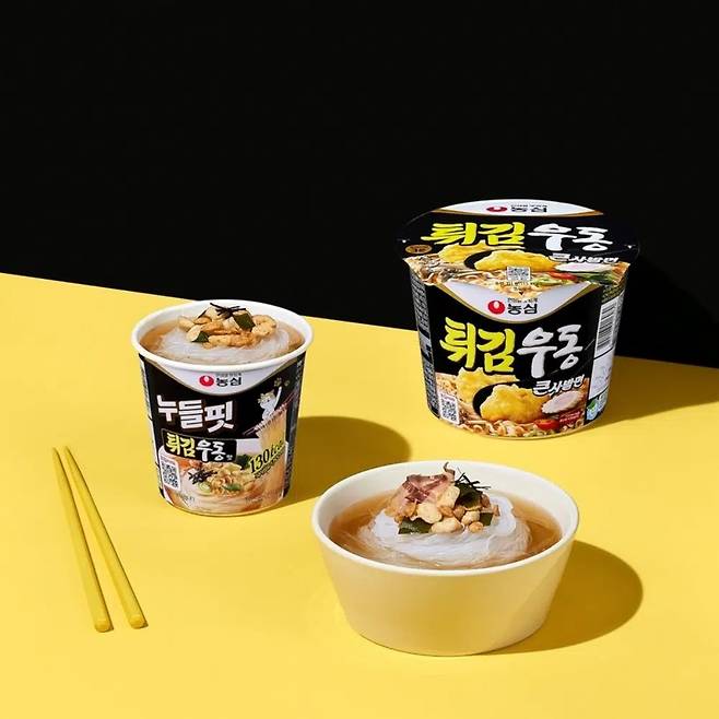 농심 튀김우동을 130kcal로 먹을 수 있다니. 하지만 정확히 말하자면 ‘튀김우동 맛’이다. 얇고 투명한 당면으로 칼로를 줄인 누들핏이 짜파구리, 카구리, 육개장에 이어 튀김우동 맛을 내놓은 것. 튀김우동이지만 안 튀긴, 하지만 튀김우동 맛은 나는 그런 요상한 신제품이다. 한 컵당 130kcal에 식이섬유도 1,500mg 함유되어 있어 부담 없다. 가격은 1,650원.