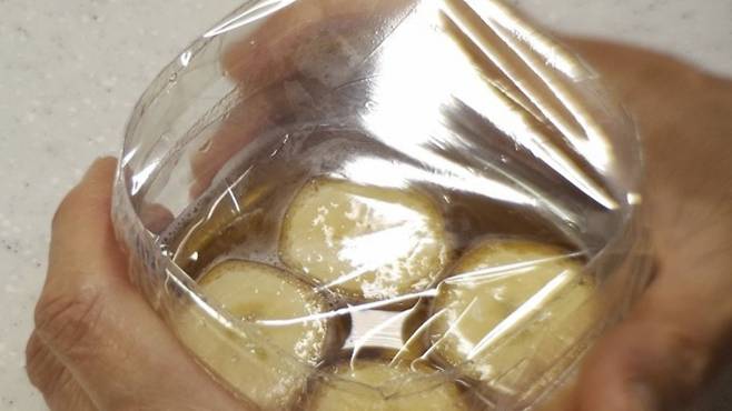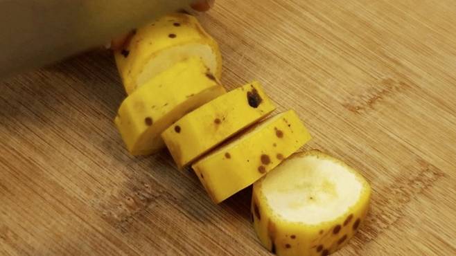 이제 바나나를 일정한 간격으로 잘라 줍니다. 만약 과육까지 사용하기 아까운 분들은 그냥 껍질만 사용해도 효과가 좋답니다.