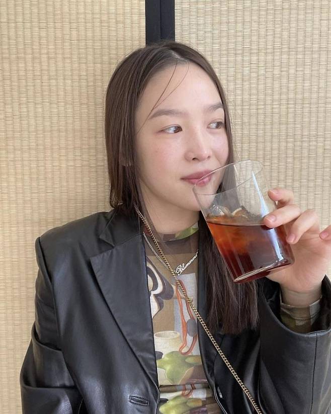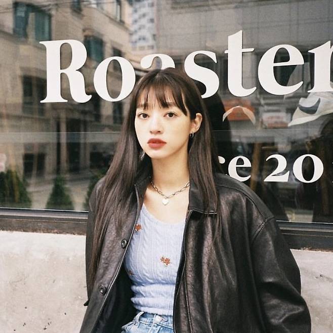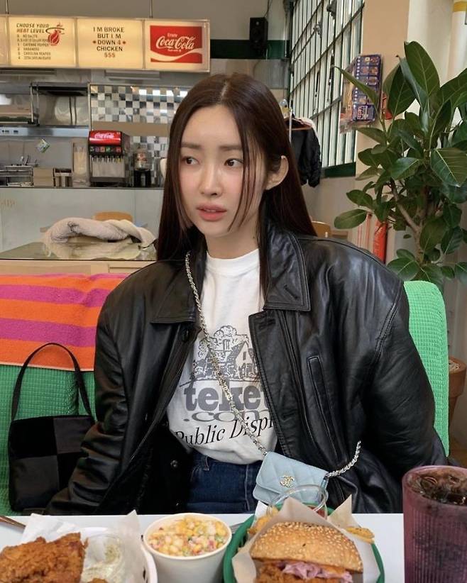 평소 어깨가 강조된 룩을 즐기는 차정원은 파워 숄더의 큼지막한 레더 재킷을 골랐네요. 프린트 티셔츠와 데님 그리고 화이트 로퍼로 깔끔하게 스타일링했습니다.