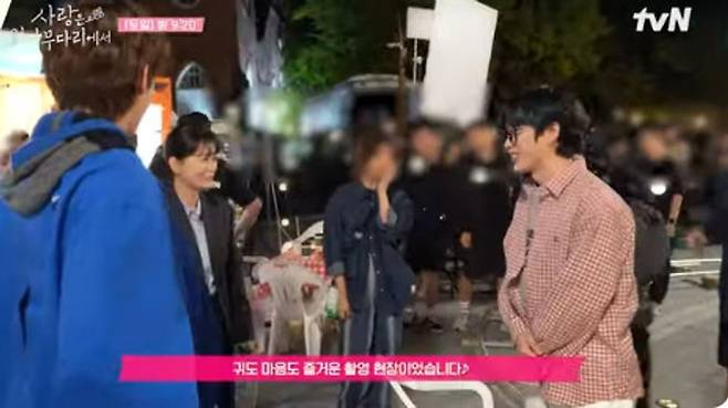 영상에선 ‘사랑은 외나무 다리에서’ 촬영 현장 바히인드가 담겼다. 지원을 향한 마음을 고백하는 문수의 씬을 촬영하는 가운데 가수 10CM 권정열이 카메오로 등장했다. '사외다‘의 ost를 부르기도 한 10CM 권정열은 ‘Be in Love'라이브로 현장을 감미롭게 물들였다.