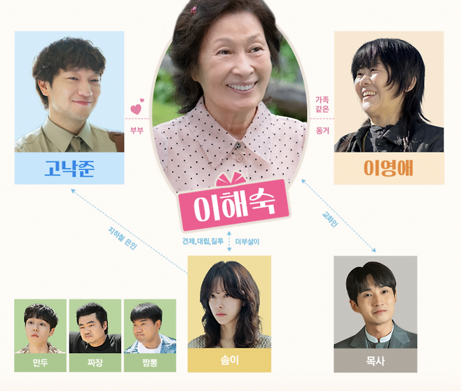 ‘천국보다 아름다운’은 시장통에서 악명 높은 일수꾼 이해숙(김혜자 분)이 실제로는 집안에서는 누구보다 다정한 아내로 살아가는 이중생활을 그리며 시작됩니다. 그녀는 하반신 마비로 40년 이상을 함께 살아온 남편 고낙준(박웅 분)을 보살피다가, 남편 사후 1년 뒤 천국으로 향합니다.