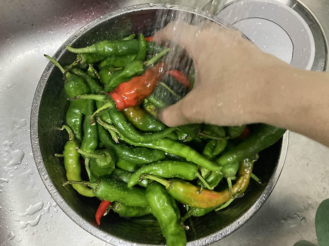 고추를 잘 헹구고