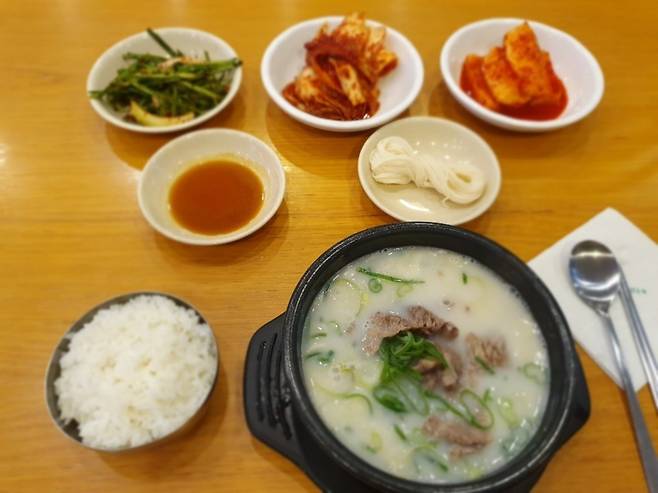 국내산 사골만 사용해 48시간 동안 가마솥에서 고아낸 육수는 뽀얗고 진하다. 국물은 느끼하지 않고 깔끔하며, 입에 남는 잡맛 없이 부드럽게 넘어간다.