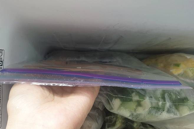 지퍼백에 넣고 냉동실에 얼려주세요.