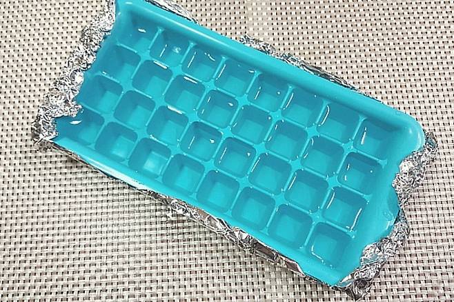 여름에 얼음 많이 필요한데요. 얼음틀에 얼음 그냥 얼리지 마시고 밑면에 쿠킹포일을 감아서 얼려보세요.