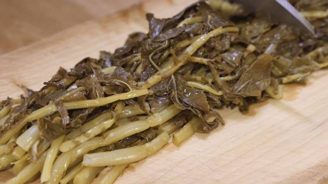 손질이 끝난 시래기는 먹기 좋은 크기로 썰어 놓으세요.