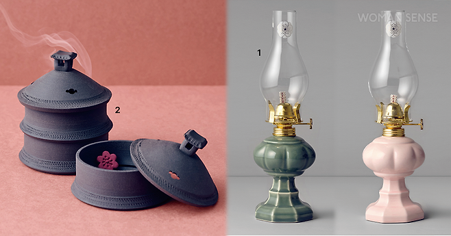 파라핀 오일을 넣으면 심지가 연료를 머금어 불이 붙는다. 대한제국을 상징하는 오얏꽃 문양이 황실의 권위를 표현하며, 은은한 색감이 오브제로 두기에 좋다. 9만3천원02 낙선재 굴뚝 연가 향로