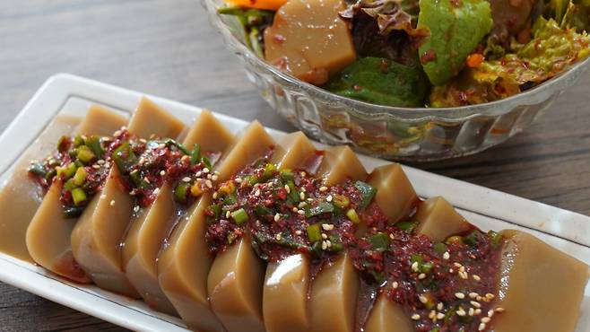 한국인에게 친숙한 음식 중 하나인 도토리묵! 특히 시원한 양념장을 얹어 먹으면 별미인데요.