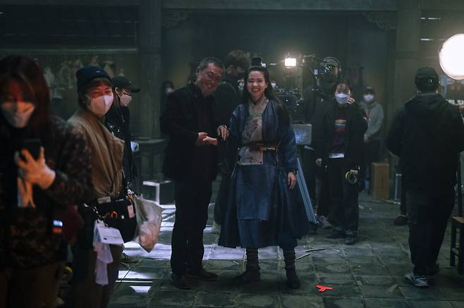1월10일 개봉한 최동훈 감독의 '외계+인' 2부(제작 케이퍼필름)가 촬영 현장의 모습을 담은 비하인드 사진을 공개했다. 주연을 맡은 김태리와 류준열, 김우빈과 이하늬를 비롯해 염정아, 조우진까지 출연 배우들의 화기애애한 모습이 눈길을 끈다.