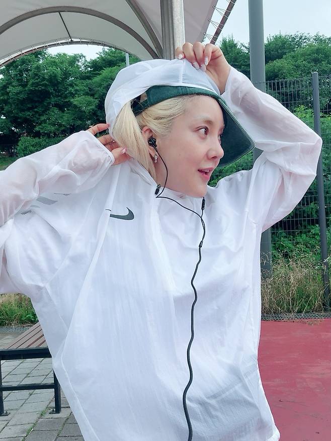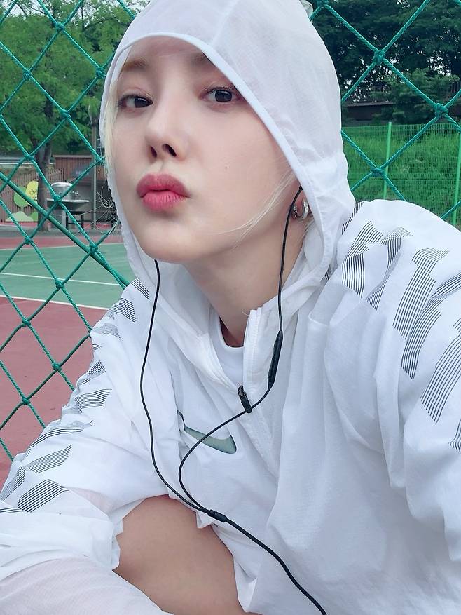 이어폰을 길게 늘어뜨린 연출도 스포티룩을 완성하는 디테일이 되고 있죠.