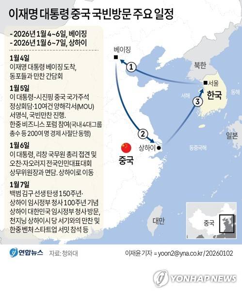 [그래픽] 이재명 대통령 중국 국빈방문 주요 일정(종합)
