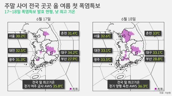 주말 사이, 올여름 첫 폭염특보가 내려졌습니다. 토요일엔 대구와 광주, 강원 춘천과 전북 완주, 경북 구미와 김천 등지에 폭염주의보가 내려진 데 이어, 일요일엔 서울과 경기 대부분 지역으로 확대됐습니다. 지난주와는 상반된 날씨가 찾아온 겁니다.