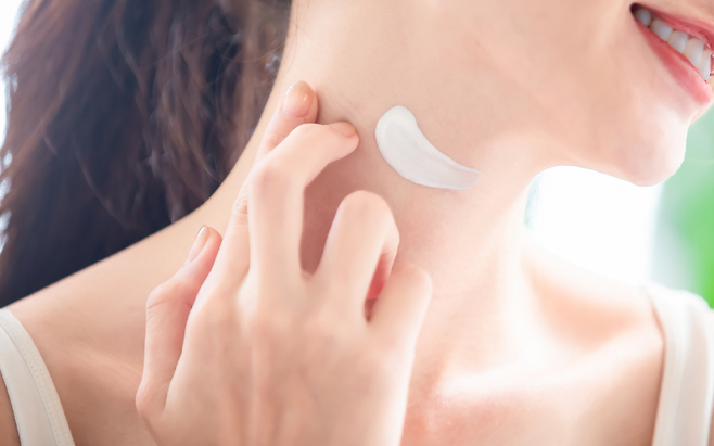 아침 저녁 바르는 스킨케어를 턱선 아래까지 연결해 바르고, 저자극 보습제와 자외선 차단제를 목에도 반드시 사용해야 합니다.