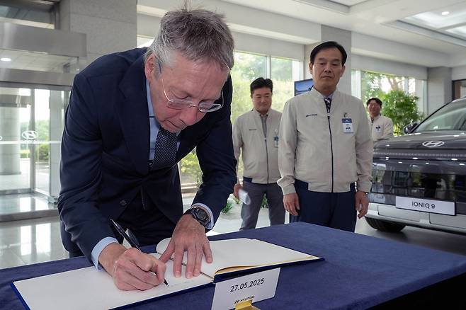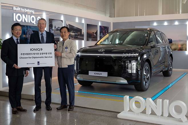 최근 현대자동차의 대형 전기 SUV ‘아이오닉 9’이 주한네덜란드대사관의 공식 관용차로 선정됐다. 지난 5월 27일, 현대차 아산공장에서 페이터 반 더 플리트 주한네덜란드대사, 현대차 GPO 김일범 부사장, 현대차 아산공장장 박세국 전무 등 관계자가 참석한 가운데 아이오닉 9 공식 관용차 전달식을 진행했다고 밝혔다.