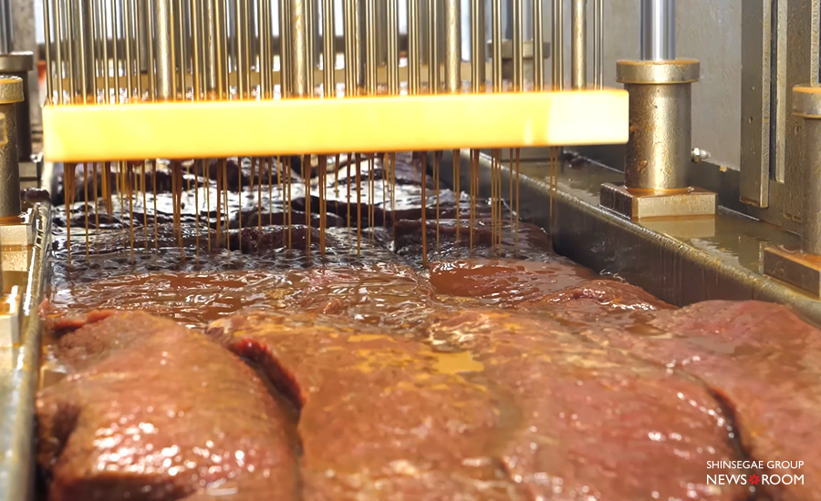 손질된 고기는 얇게 썰어 핏물을 빼준 뒤, 고기에 양념을 입히는 ‘염지’ 과정에 들어간다. 항진축산에서는 독자적으로 개발한 특허기술을 활용해 염지를 진행하고 있다. 양세승 대리는 “염지 과정에서 인젝터를 활용해 양념을 주입함으로써 육포의 풍미를 극대화하고 있다”고 설명했다.