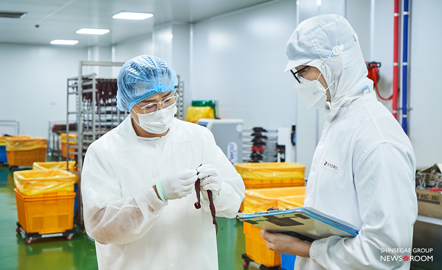 간편하게 즐길 수 있어 사랑 받는 육포이지만, 만드는 과정은 결코 간단하지 않다. 육포의 경우 작업자의 손길을 반드시 거쳐야만 하는 까다로운 식품이다. 최첨단 설비와 자동화 시스템을 갖춘 이곳에서도, 사람의 손길이 닿지 않는 단계는 거의 없다.