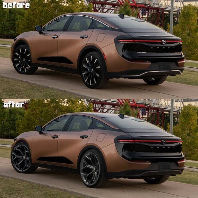 특히 최근에 공개된 렌더링 이미지는 크라운 차량에 섀도우 라인 처리와 낮춰진 서스펜션 설정을 적용하여 일반 세단 범주로 돌아가는 모습을 구현했다. 또한 Vossen의 새로운 애프터마켓 휠 옵션도 적용했다.