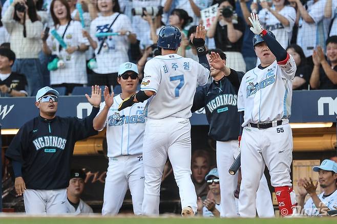 | ▲ 17일 창원엔씨파크에서 열린 NC 다이노스 대 한화 이글스의 경기에서. NC가 9-4로 승리했다. NC 유격수 김주원은 이날 3안타 1볼넷으로 4출루 경기를 만들며 후반기 강세를 이어가고 있다. |
