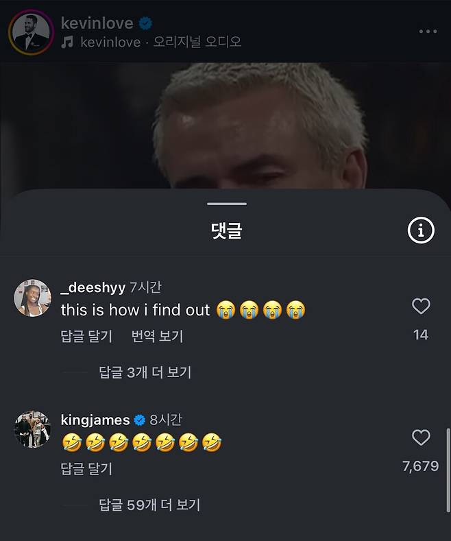 또 하나 재밌는 건, 르브론 제임스(레이커스)가 여기에 반응했다는 것. 사진과 같은 이모티콘을 댓글에 달아 같이 공감했다.