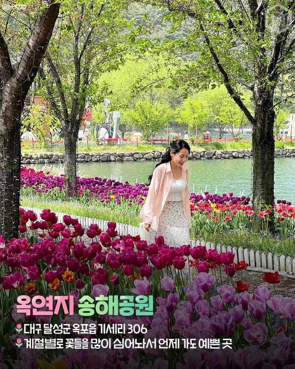 2025년 4월에서 2025년 5월에 방문하신다면 네덜란드를 떠올리게하는 튤립 꽃이 피어있는 대구 옥연지 송해공원을 만나볼 수 있어요.