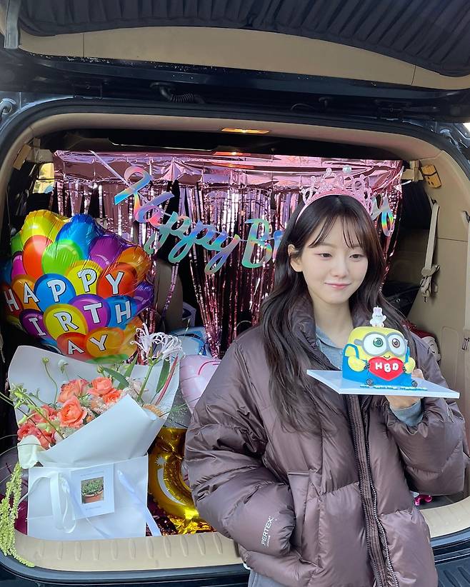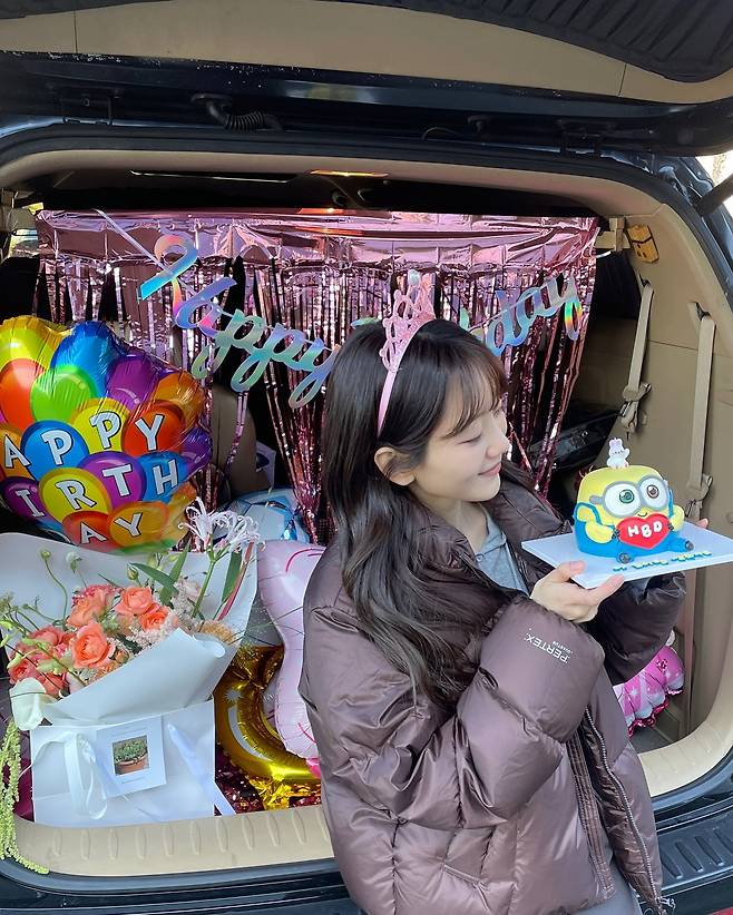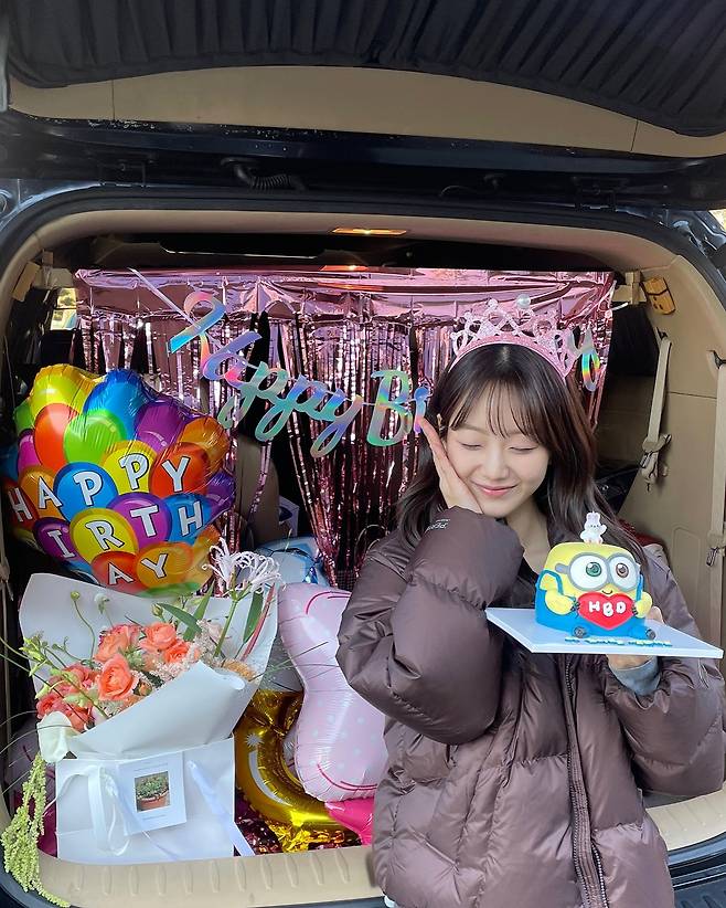 사진 속 조이현은 'Happy Birthday' 문구와 오색찬란한 풍선, 예쁜 꽃다발에 둘러싸여 진심으로 즐거워하는 모습인데요.