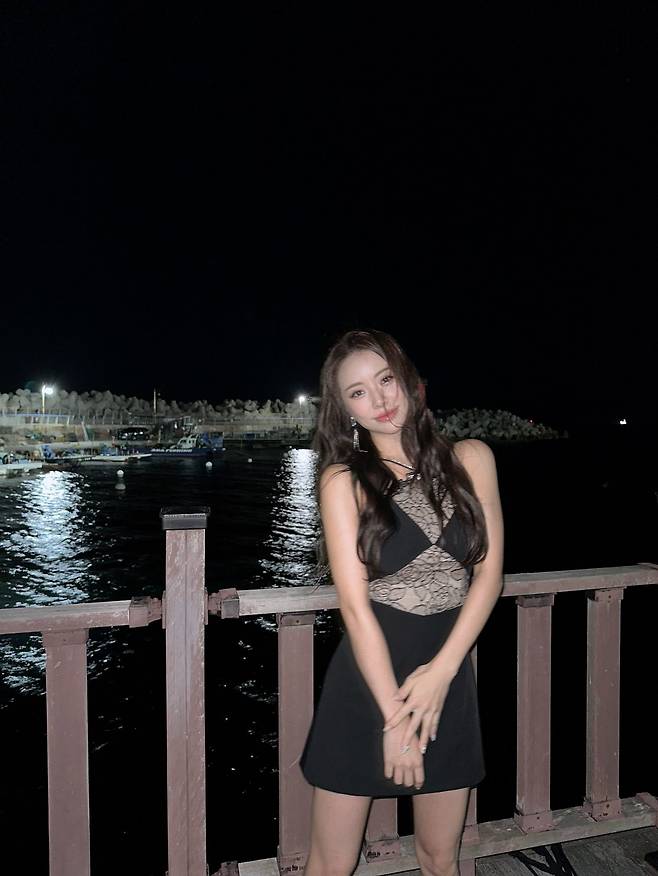 특히 상체를 감싸는 레이스 패턴과 크로스 컷 디테일은 여성스러운 실루엣을 강조하면서도 글래머러스한 매력을 배가시켰다. 블랙 컬러 미니 원피스가 각선미를 더욱 길고 날씬하게 표현하며, 자연스럽게 늘어뜨린 웨이브 헤어가 청량한 여름밤의 무드와 어우러졌다. 팬들은 댓글로 “바다보다 더 눈부시다”, “드레스 핏이 완벽하다” 등의 반응을 남기며 뜨거운 호응을 보였다.