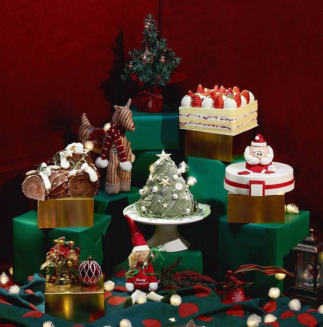 상큼한 라즈베리 잼과 달콤한 가나 슈로 만들어 진한 초콜릿의 풍미가 느껴지는 크리스마스 시즌 대표 케이크 ‘부쉬드 노엘’, 딸기가 아낌 없이 듬뿍 들어간 ‘딸기 생크림 케이크’, 푹신한 제누아즈 시트에 딸기 콩피를 올려 고소한 쑥 크림으로 마무리한 ‘메리 트리 케이크’, 피스타치오 시트에 베리 퓨레와 프랄린을 넣은 화이트 초콜릿 무스 ‘산타 케이크’를 12월 한정으로 판매하며, 각각 5만9000원, 6만8000원, 6만5000원, 7만2000원이다.