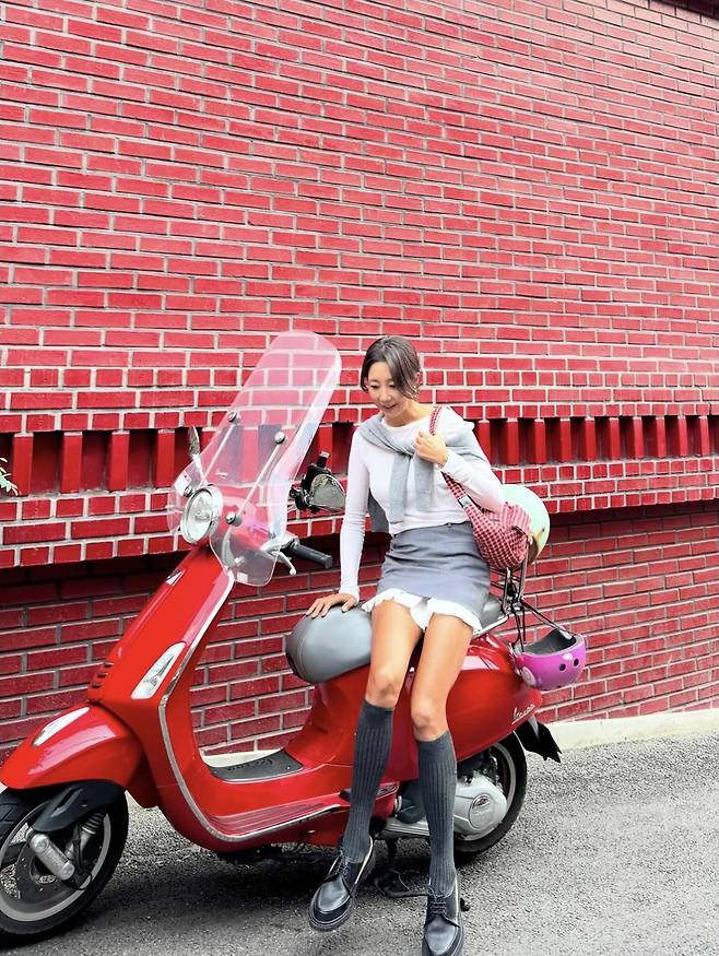 미니스커트를 매치한 스타일링을 공개하며 ‘세 아이 엄마’라는 사실이 무색할 만큼 탄탄한 몸매와 동안 미모를 뽐냈습니다.