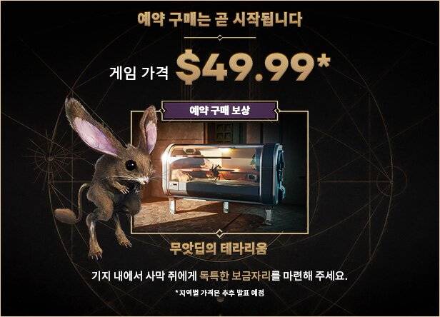 한편, 펀컴은 출시일 공개와 함께 사전 예약 보상을 공개했다. 사전 예약 참여자는 듄의 상징적인 사막쥐를 관찰할 수 있는 특별한 장식 아이템 ‘무앗딥의 테라리움(Terrarium of Muad’Dib)’을 받을 수 있다. 또한 캐릭터 생성 및 벤치마크 모드를 다운로드 받으면 정식 출시 후 게임 내에서 사용할 수 있는 ‘프레임블레이드(Frameblade) 나이프’ 스킨이 제공된다.