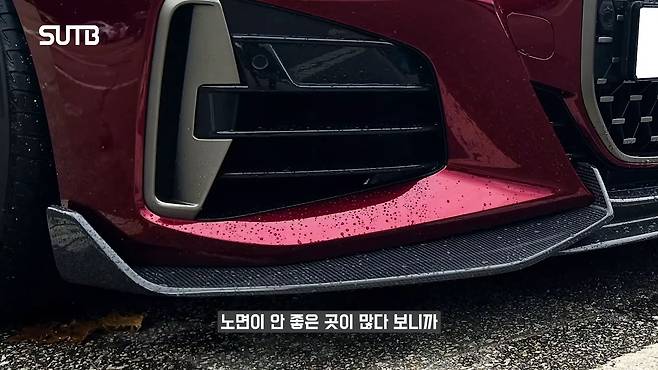 또 다른 단점은 차량이 낮은데 있어서 오는 제약이 많아 돌아니기에 불편합니다. 지하주차장이나 방지턱이나 노면이 안 좋은 것을 많이 신경 쓰게 됩니다. 서스펜션도 다른 세팅을 했는데, 스프링 레이트가 일반 순정 차량들과는 더 짧은 세팅입니다. 순정 차량은 그렇게 문제가 되지는 않지만 일체형이나 아니면 스프링 레이트를 좀 짧게 가져가거나 프런트 립을 장착을 한 차량들은 조금 주의를 요한다 정도의 단점이 있습니다.