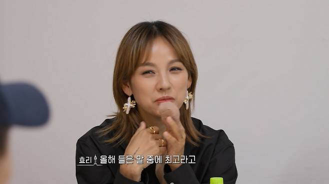 이효리는 블랙 셔츠에 골드 악세서리를 매치했습니다.